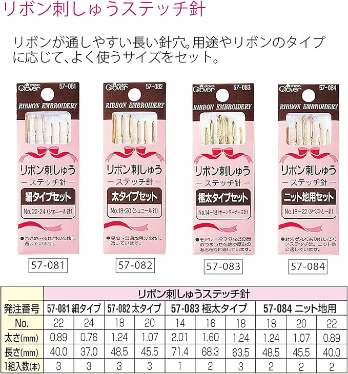 Clover リボン刺しゅうステッチ針 太セット 57-082