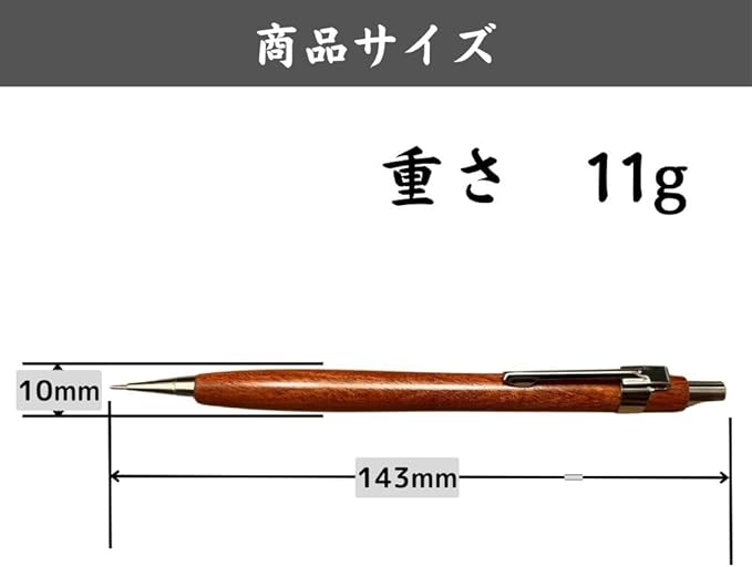 【商品仕様】木軸シャーペン 長さ:143mm グリップ:φ10mm 重量:11g