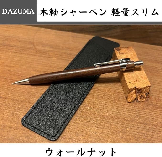 木軸シャーペン 軽量 スリム ペンケース 木製 シャープペンシル 0.5mm 希少木 銘木 職人 手作り ハンドメイド 工房 木軸 シャーペン 0.5 (ウォールナット 芯ケース)