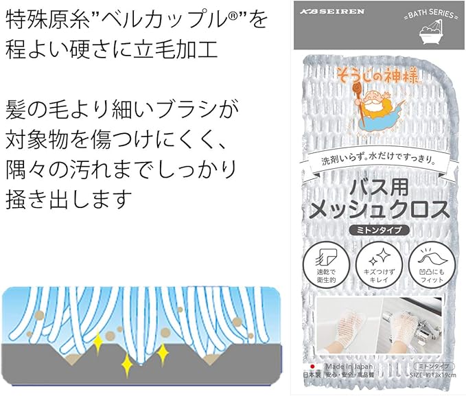 KBセーレン(KB Seiren) そうじの神様 バス用 メッシュクロス ミトンタイプ ホワイト 19 13cm S086