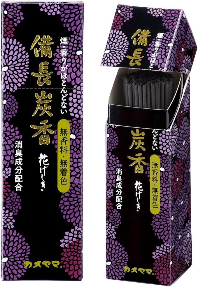 カメヤマ 花げしき 備長炭 小型 約80g 約150本 お線香 無香料 無着色 消臭成分配合