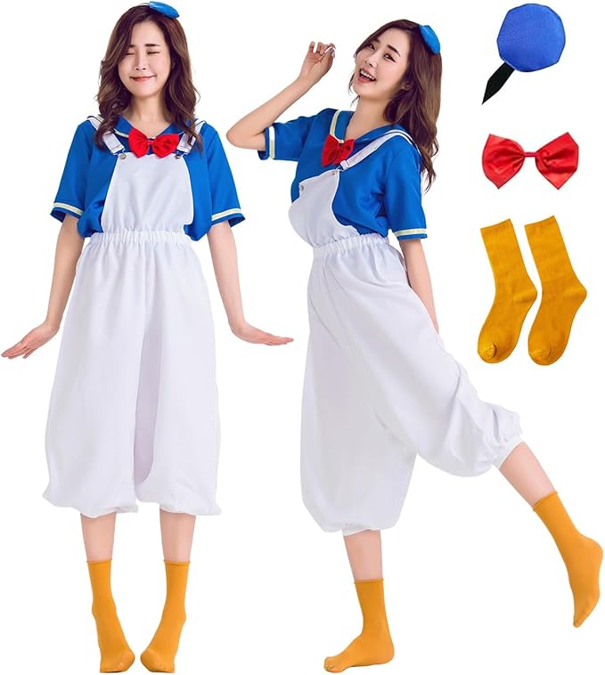 【5点セット】上着+吊りズボン+リボン+ヘアクリップ+靴下。シンプルなデザインでコスプレしやすく、ハロウィンパーティーや日常のイベントにぴったりです