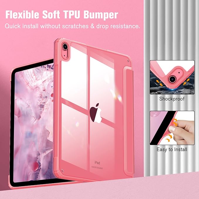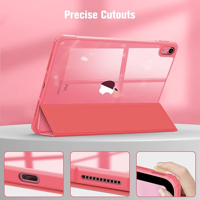 Fintie iPad 第11世代 (A16、2025) / 第10世代 (2022) ケース 11/10.9インチ 透明バックカバー 三つ折スタンド スリープ機能 軽量 薄型 傷つけ防止 PU合成レザー TPU(スイカ)