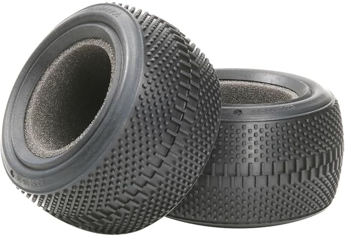 正方形と長方形の2パターンのブロックを配したバギー用リヤタイヤです。オフロードはもちろん、舗装路やカーペット路面でも安定した走行を実現。