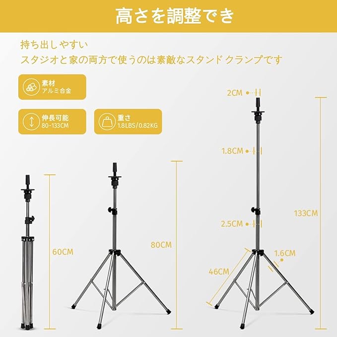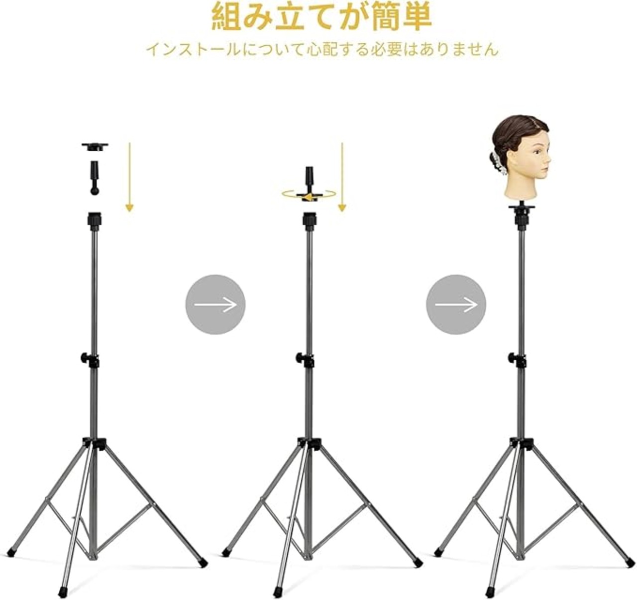 【製品仕様】高さ:77.5-120cm、重量:0.82kg。キャリングケース付き。※マネキンヘッドは付属しませんのでご注意ください。