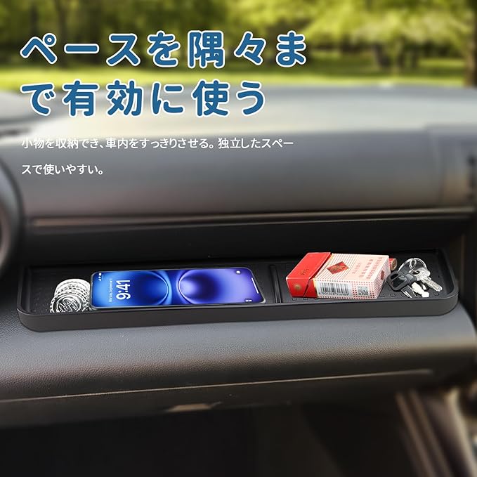 3.【収納抜群 】:トレイはスペースを有効活用して小物を収納することができます。携帯電話、ティッシュ、カード、鍵などを置くことができます。トレイの内側には凸凹があり、滑り止めの効果があります。