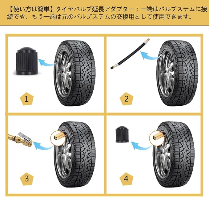 【商品機能】このタイヤバルブ延長チューブは、車のタイヤに空気を入れるのが難しいという問題を見事に解決してくれる。タイヤバルブ延長アダプターはバルブコアが内蔵されており、空気を入れたり抜いたりすることが可能です。