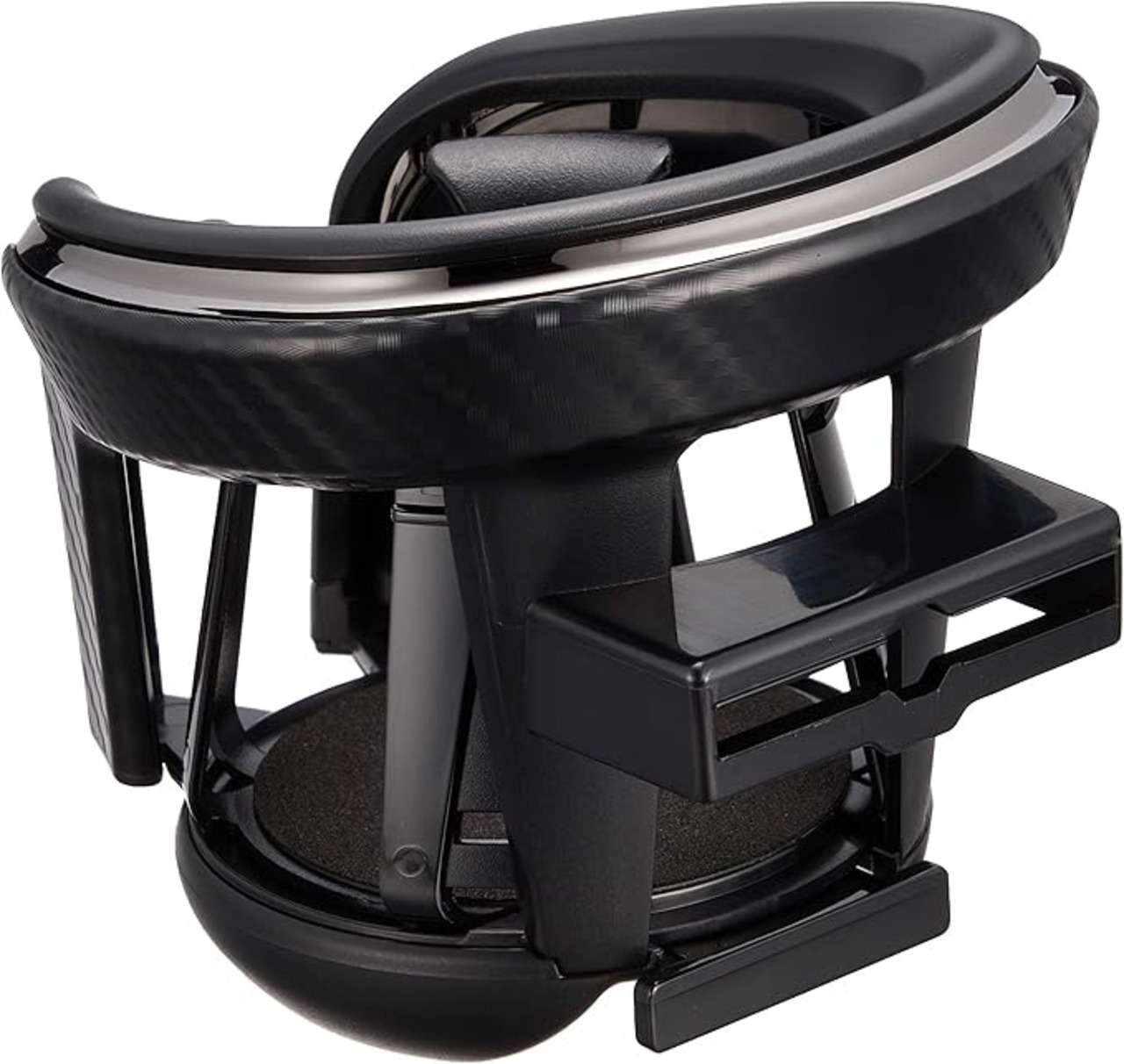 本製品は車両のエアコン送風口に取り付けるドリンクホルダーです。様々なドリンクの形状に対応しています。