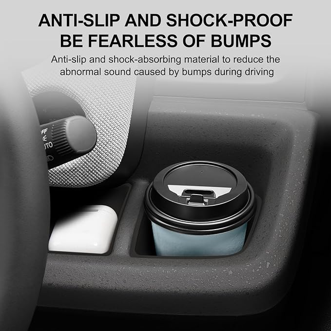 3. [合理的なスペース分け・騒音軽減]:フリード収納トレイは、サイズの異なるいくつかの収納エリアに分割されています。携帯電話、ティッシュ、カード、鍵、飲料などを置くことができます。滑り止め・衝撃吸収設計によって、コップボックスとコップの衝突による損傷を防ぐことができます。
