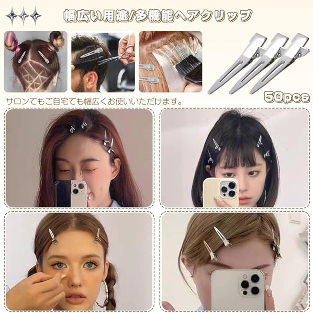 ヘアクリップ プロ用 メタルダックビルヘアクリップ 約50個セット ヘアピン ワニクリップ ステンレス 前髪 散髪 スタイリング 髪留め ステンレス クリップ 跡がつかない 美容師 業務用 長さ4.5cm(シルバー)