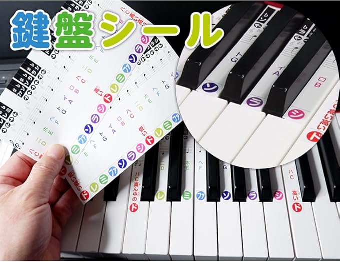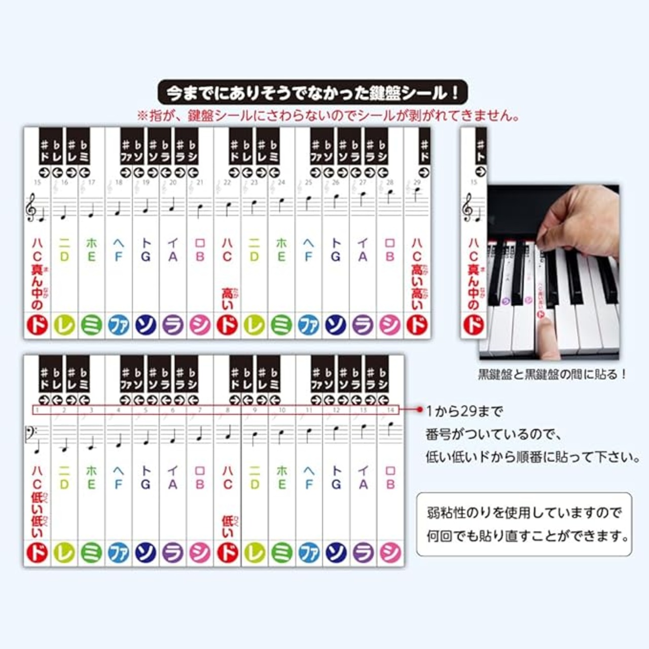 ✅鍵盤に貼って、楽譜と照らし合わせながら鍵盤の位置を視覚的に学ぶことができる鍵盤シールです。