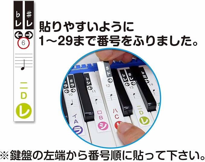 鍵盤シール 29鍵盤 ピアノ キーボード 初心者 鍵盤補助 ドレミ シール 音楽 独学 レッスン 教材
