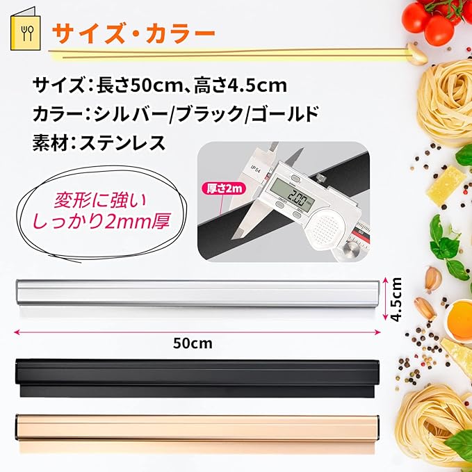 【サイズ・カラー】サイズ:長さ50cm、高さ4.5cm カラー:シルバー/ブラック/ゴールド 素材:ステンレス