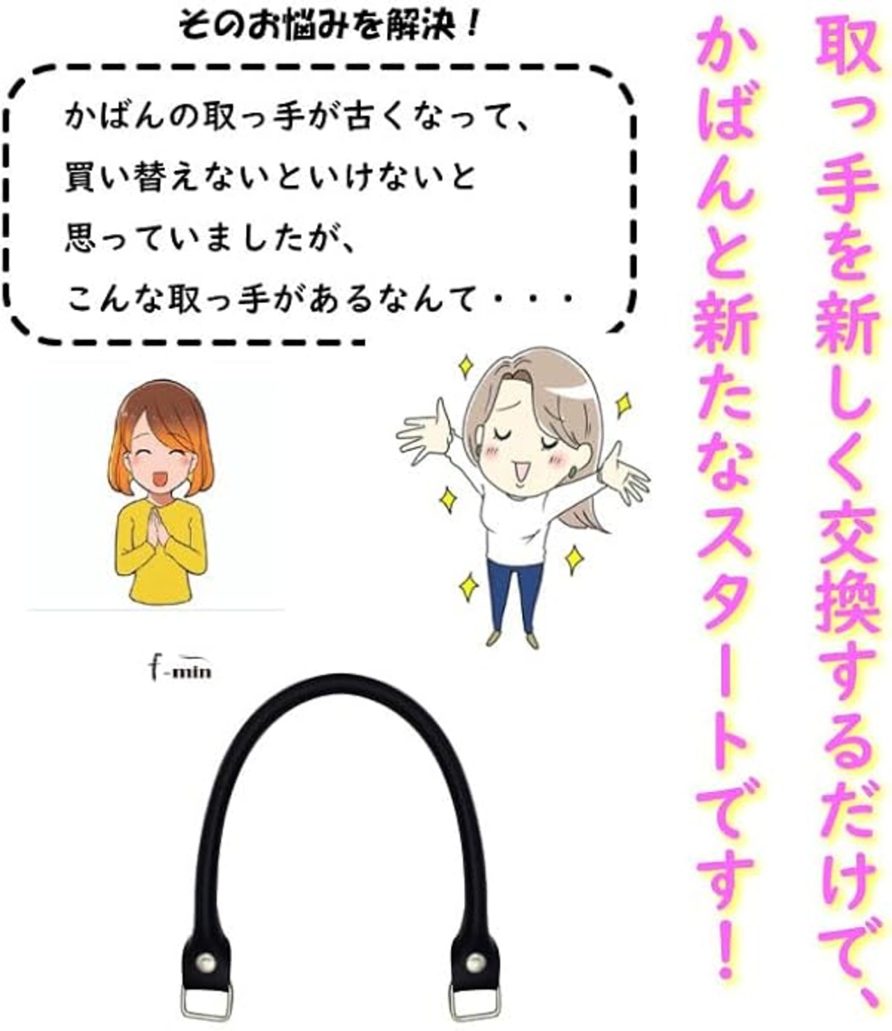 [f-min] 本革 2層レザー 黒 D菅付き かばん 持ち手 取っ手着脱可能 バッグ持ち手 38cm 50cm 60cm ブラック かばん取っ手 ビジネスバッグ修理用 補修用持ち手 バッグハンドル 手芸用持ち手 牛革 自分で取り替えられる持ち手 交換用持ち手