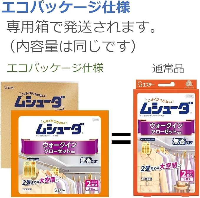 ムシューダ [限定商品] 衣類用 防虫剤 ウォークインクローゼット専用 3個入 無香タイプ エコパッケージ 1年間有効 衣類 防虫 [きれい生活]