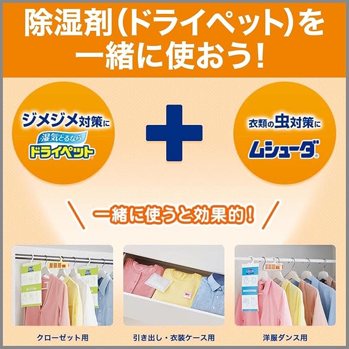 ●使用上の注意を守って、衣類を大切に保管しましょう。 ※本品と除湿剤(ドライペット)を一緒に 使用すると、防虫・除湿の効果で、大切な衣類を守ります。
