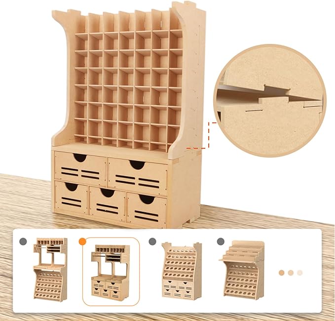 Bucasso プラモデル ペイントラック 塗料収納 49本収納可能 塗料ラック 塗料棚 TAMIYA/MR HOBBY/gaia/JUMPWINDに対応 模型用塗料収納ラック MDF素材 耐用 GK13