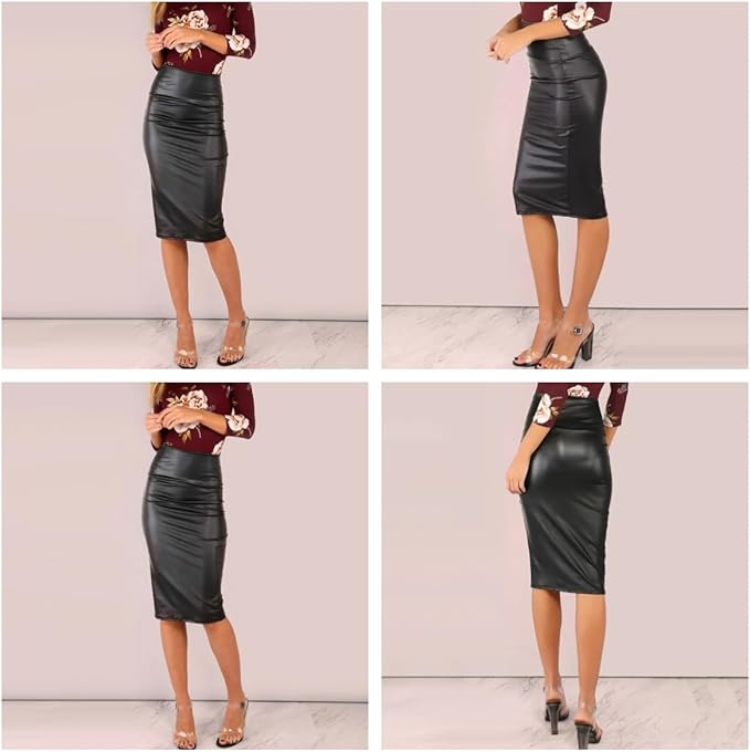 [Getrays] レディース PU スカート、ハイウエスト ボディコン ペンシル ミディ スカート、ブラック フェイクレザー ラップ オフィス スカート、伸縮性のあるカジュアル スリム ヒップラップ ペンシル ドレス