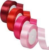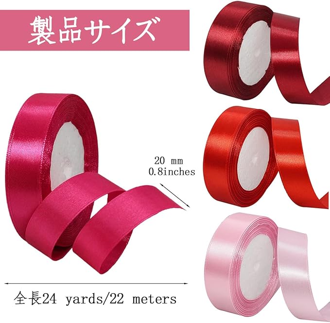 Getrays 4巻入 サテンリボン、20mm幅 長さ22m 無地 飾りファブリックリボン ギフト包装用、DIY 手芸用リボン シアー リボン ために 花束 花輪 結婚式 パーティーの装飾 ヘアボウ作り (レッド & ピンク)