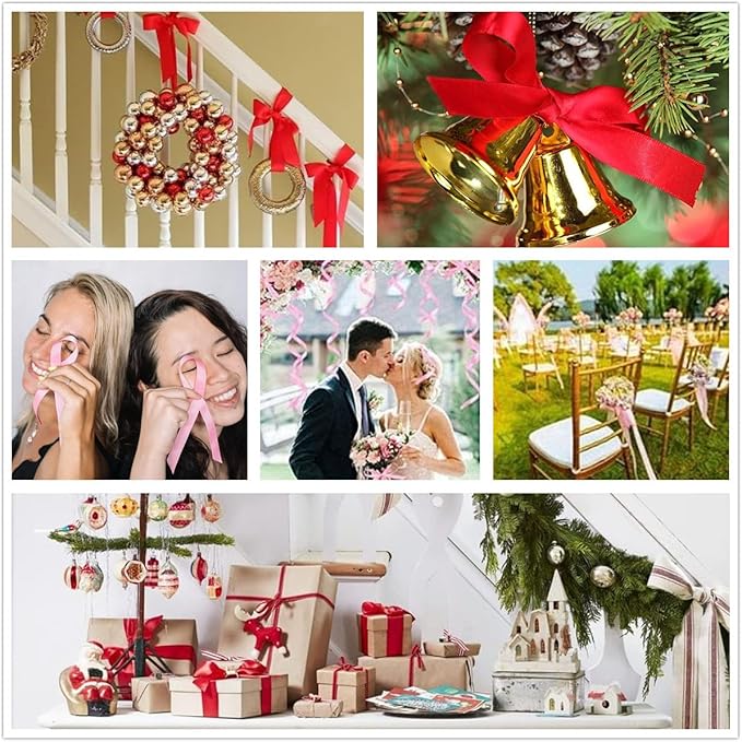 【応用が広い】 ピンク、赤、ホットピンク、ワインレッドなど、4巻の異なる色のリボンが届きます。結婚式からパーティーの装飾、花嫁の贈り物から赤ちゃんの贈り物会、ホテルから家庭の装飾まですべて良いです。どんな場面やDIYプロジェクトにも適しています。