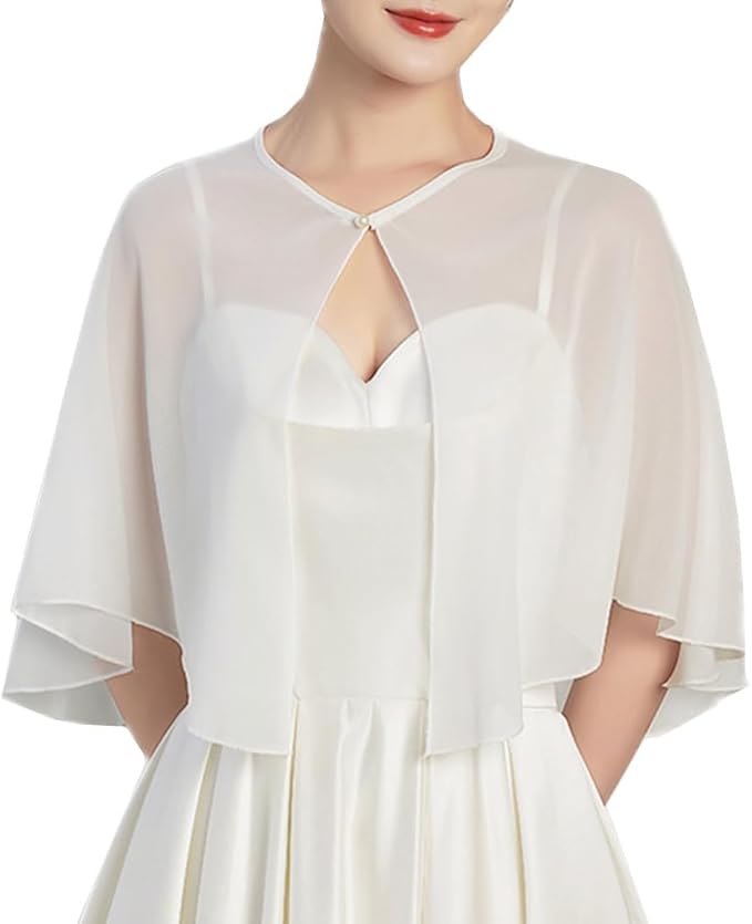 [Getrays] シフォン ショール レディース 無地 薄手 真珠バックル ケープレット ドレス用 前開き 透け感 カーディガン 日焼け止め 冷房対策 ケープ 肩掛け 結婚式 二次会 発表会 お茶会 仮装 舞台 撮影用