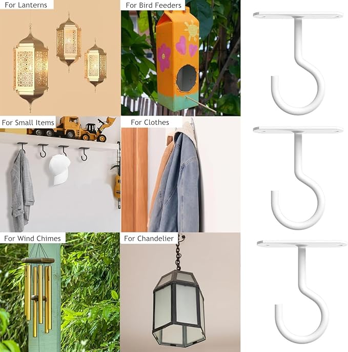 【多機能フック】⭐ これらのフックは、鳥の餌やり器、ランタン、植木鉢、祭りの装飾品、風鈴、燭台など、室内や屋外に植物やその他の物品をぶら下げるのに適しています。快適な室内庭園を作ったり、屋外の生活空間に緑を添えるのに適しています。