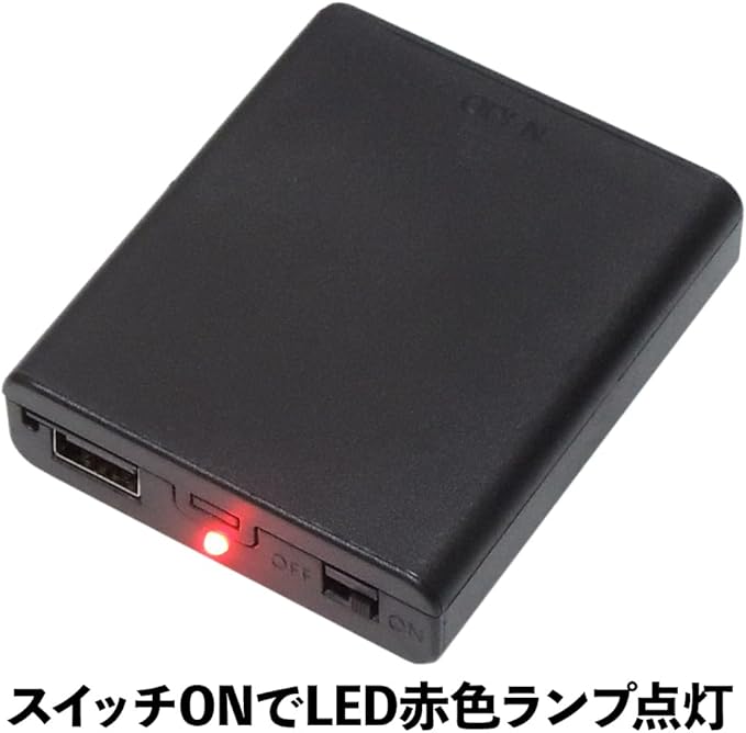 KAUMO 電池ボックス USB出力 (単3電池 4 直列 6V) ON/OFFスイッチ付き LEDランプ 電池ケース 電池ホルダー (1個)
