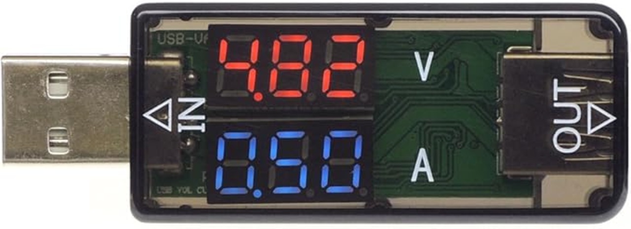 KAUMO USB電流電圧計 数値が大きくはっきり見えるシンプル設計 (ディスプレイ 赤/青)