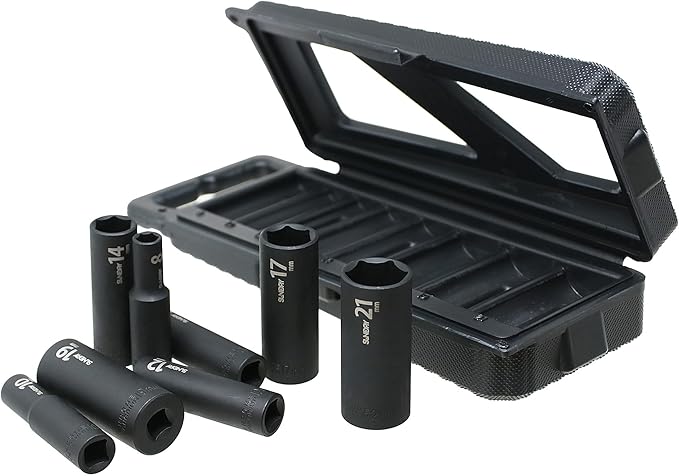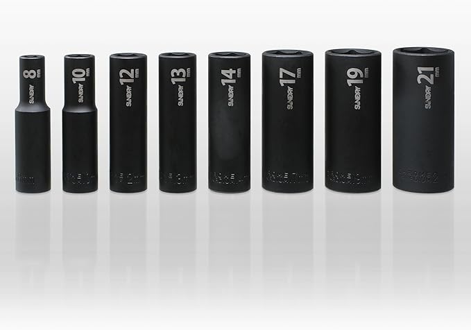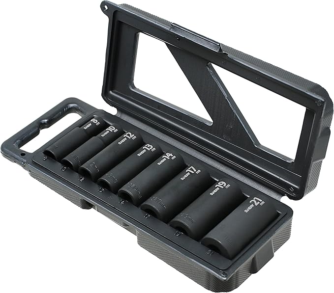 サンドリー(SUNDRY) ディープソケットセット 8本組 全長63mm 差込9.5mm角(3/8inch) 8/10/12/13/14/17/19/21mm 収納ケース付 ロングタイプ SDR-B01