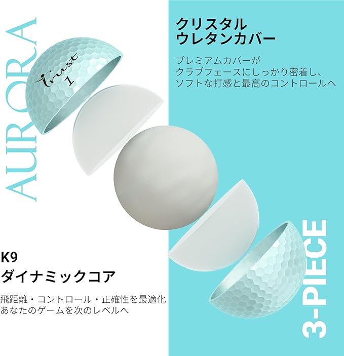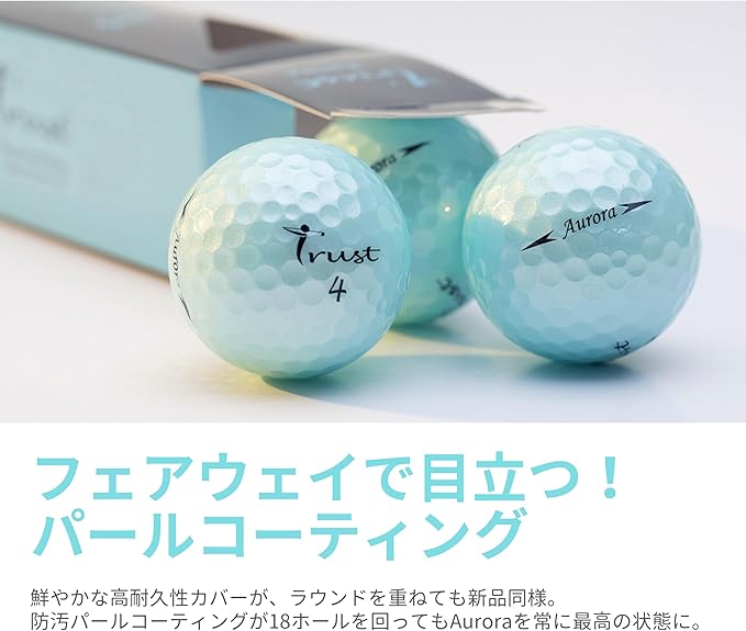 【TRUST】トラストゴルフボール Aurora(オーロラ)/Rosa(ローサ) 被らない 目立つ 飛ぶ 曲がらない 止まるクリスタルウレタンカバー3ピースリアクティブコア(ツアー系) 1ダース(12個入り)/4ダース(48個入り)オーロラブルー/オレンジ/イエロー/ゴールドピンク