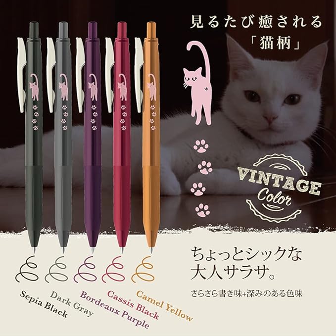 ゼブラ ジェルボールペン サラサクリップ ビンテージカラー 0.5mm 猫 5色セットB JJ15-5C-VI2-CATC