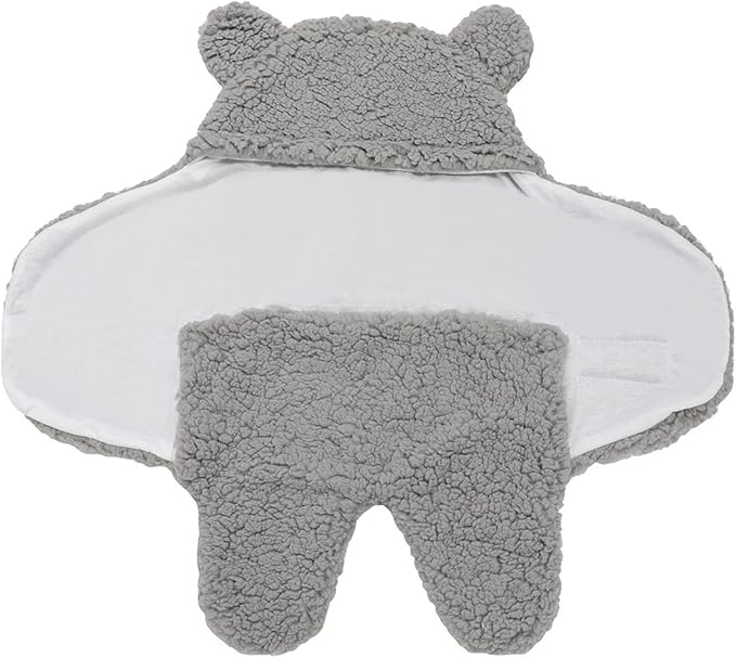 YBB ベビーおくるみ 新生児おくるみ ベビー寝袋 ベビー服 春 秋 冬 出産祝い お出かけ 足付き フード付き 防寒 暖かい 柔らかい かわいい ふわふわ もこもこ 抱っこ布団 撮影用 (グレー)
