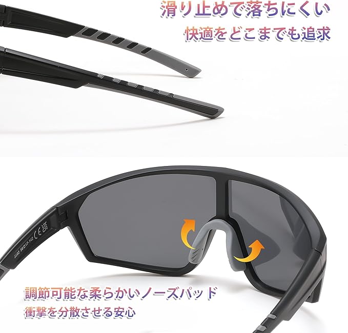 【ファッション スポーツサングラス】Karsaerのサングラスは、スタイリッシュなデザインを際立たせる一体型フレームとミラーレンズを採用。調整可能な滑り止めノーズパッドは、さまざまな鼻や顔の形に適応します。軽量で、専用のメガネ収納ケースが付いており、使いやすさも抜群です。|寸法-レンズ横幅:75mm(2.95インチ)、フレーム高さ:50mm(1.97インチ)、テンプル長さ:120mm(4.72インチ)、ブリッジ幅:18mm(0.71インチ)、フレーム幅:145mm(5.71インチ)