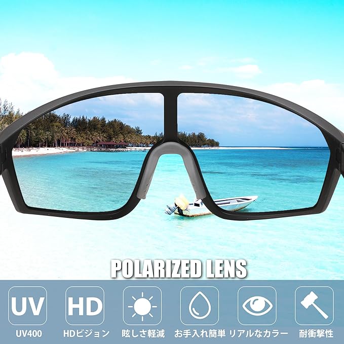 【高品質な素材】フルフレームデザインにPCメモリ素材を使用し、耐久性が抜群。高品質なレンズと組み合わせることで、強い衝撃から目を守ります。偏光レンズは、世界をより鮮明で本来の色彩に近い視界で見せてくれます。