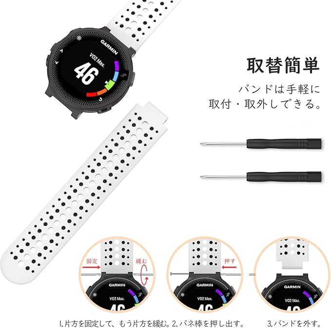 ガーミン用 ForeAthlete 235J/220J/230J/235J/620J/630J/735XTJ ベルト 交換ベルト バンド ガーミン Forerunner 235/220/230/620/630 / 735XT フォーアスリート235J シリコン製腕時計ストラップ White+Black