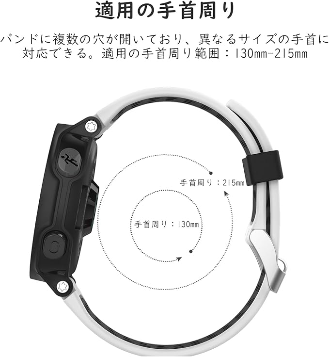 ●130mm-215mm手首にフィットします、ご購入前に機種と手首の大きさをご確認ください。