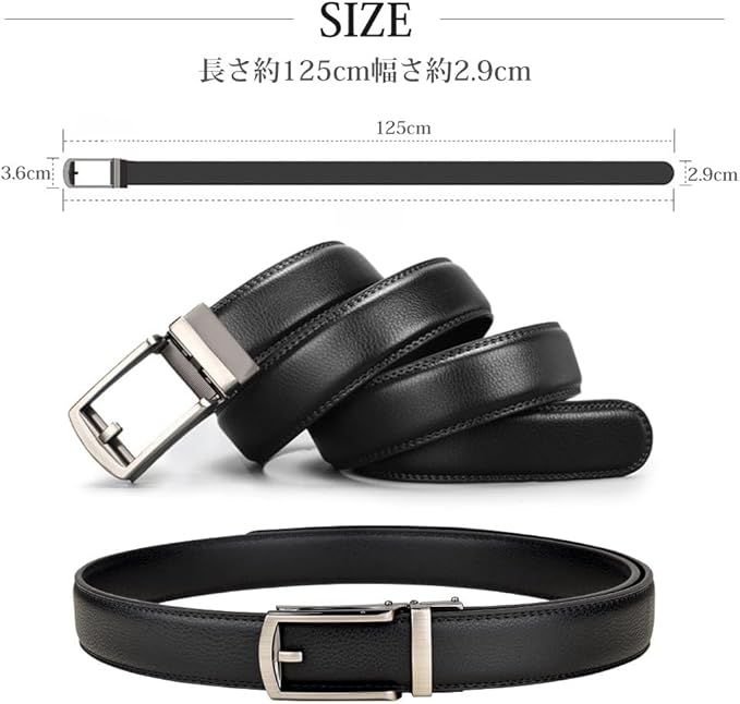 [MISSOKIE] 本革 ベルト メンズ オートロック バックル 無段階 穴なし スーツ ビジネス カジュアル コンフォート クリック ロング 120cm