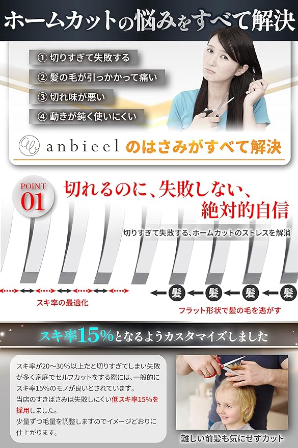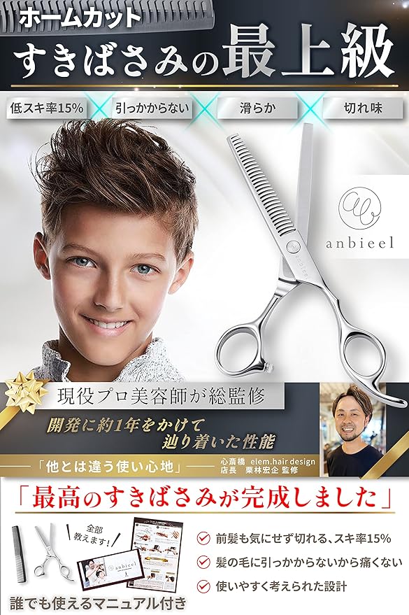 anbieel (現役プロ美容師が総監修) すきばさみ 低すき率 スキバサミ 散髪 セルフカット セニングシザー ホームカット すきバサミ