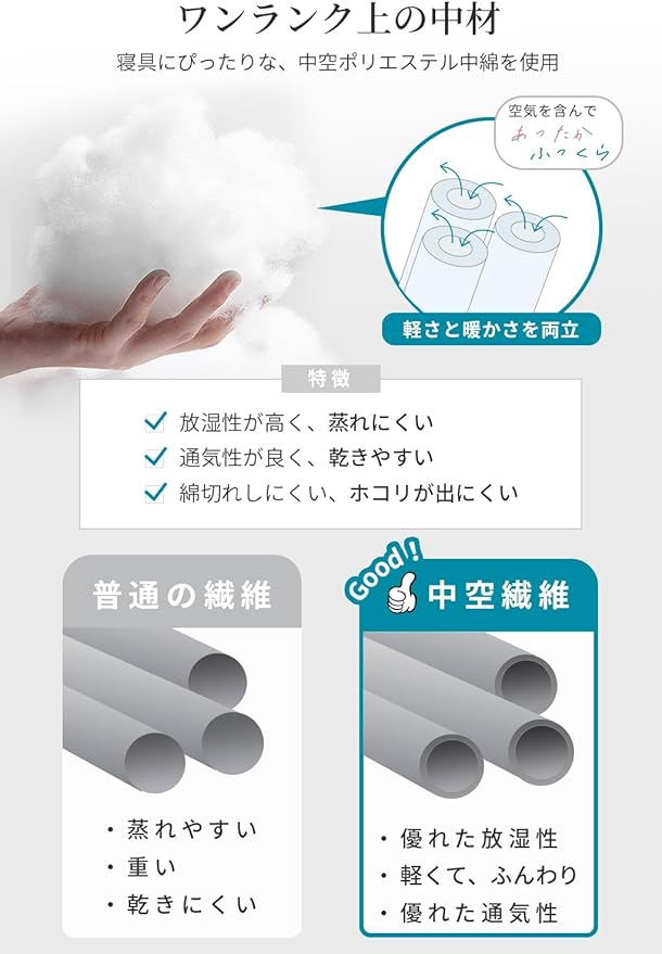 【フワっと軽い!】フワっと軽く体を包んでくれるので、よりリラックスした眠りに。女性でも持ち運びラクラク!来客用にもピッタリです。