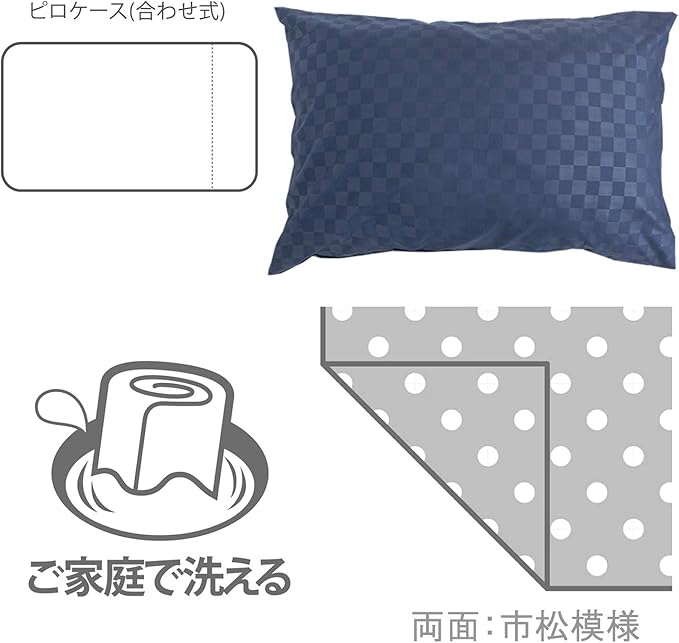 掛布団カバー:表面 型押し市松柄入り・裏面 無地カラー<br>ベッドシーツ: 無地カラー<br>ピロケース: 両面 型押し市松柄入り
