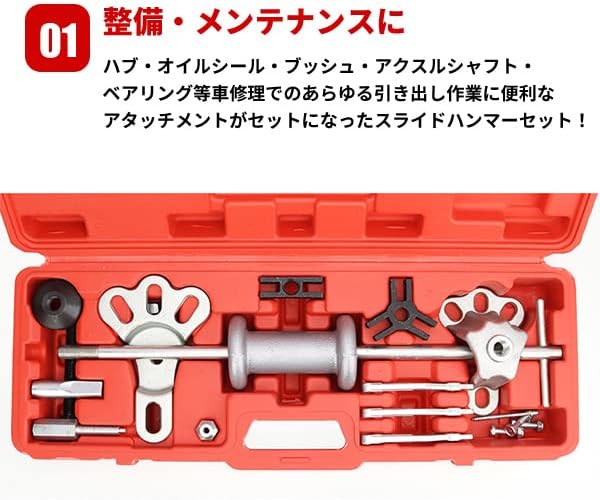 Wellvie classy スライドハンマーセット 車用 ベアリングプーラー ハブ交換 叩き出し用 工具セット 整備・修理・メンテナンス用 専用ケース付き 特殊工具 スライディングハンマー