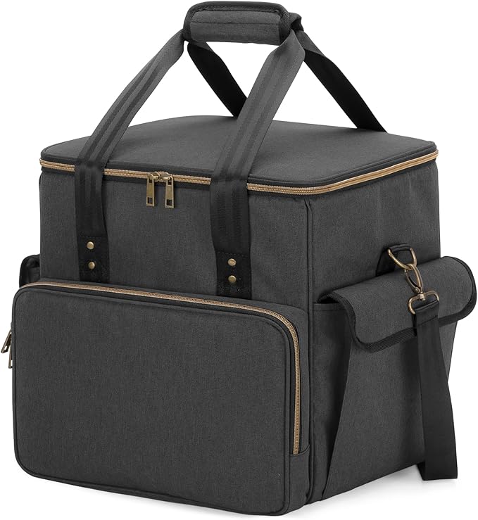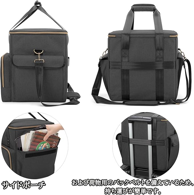 【大容量のレコードバッグ】サイズ:33*26.7*34.3cm。レコードケースは7/ 10/12インチの約60枚のレコードを収納できます。フロントポケットと2つのサイドポーチがあり、7インチのレコードを数枚収納できます。あるいはアクセサリーとクリーニング用品を収納できます。