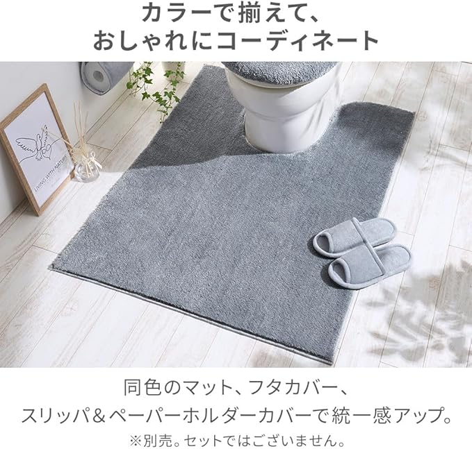 ベルーナ(BELLUNA) トイレマット ロング 洗える おしゃれ トイレカバー フタカバー スリッパ&ペーパーホルダー 耳長 ワイド マイクロ素材 滑り止め 抗菌防臭 ふわふわ へたりにくい 単品 (283970-407)