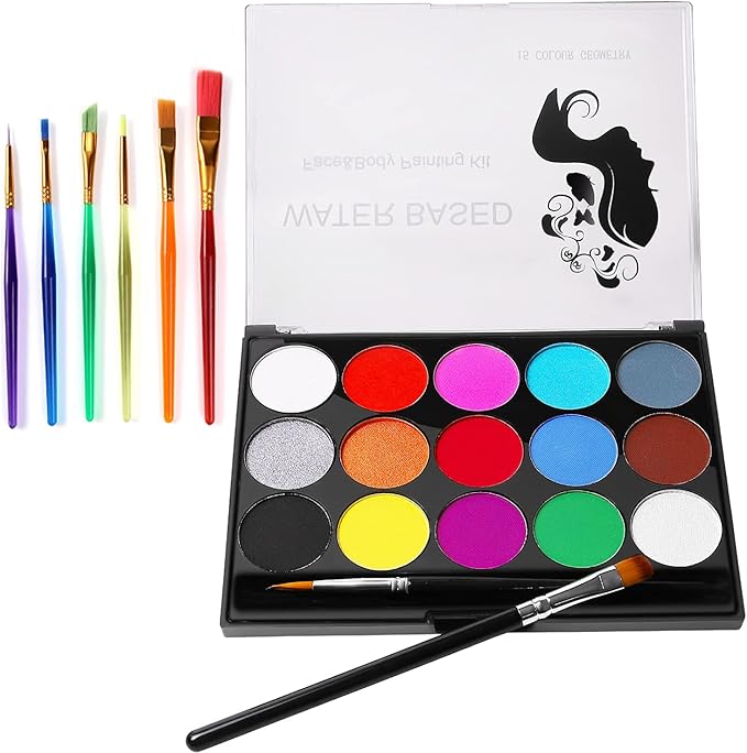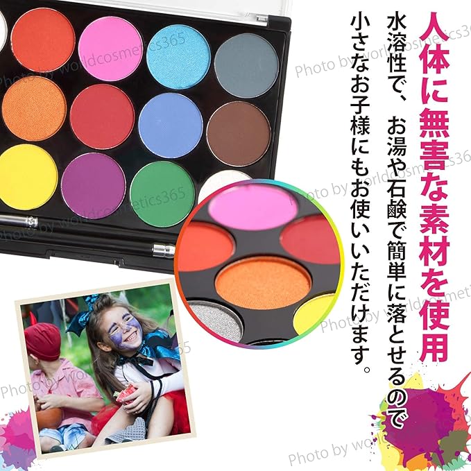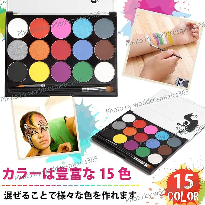 フェイスペイント 15色 【国内検査済】 安全 ボディペイント ベリーペイント アートメイク アイシャドウ アイライン チーク メイクアップ 化粧 コスプレ 小道具 メイク コスメ 仮装 安全 絵具 ハロウィン Halloween クリスマス