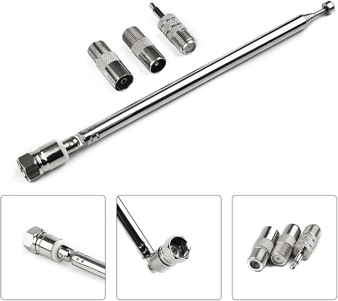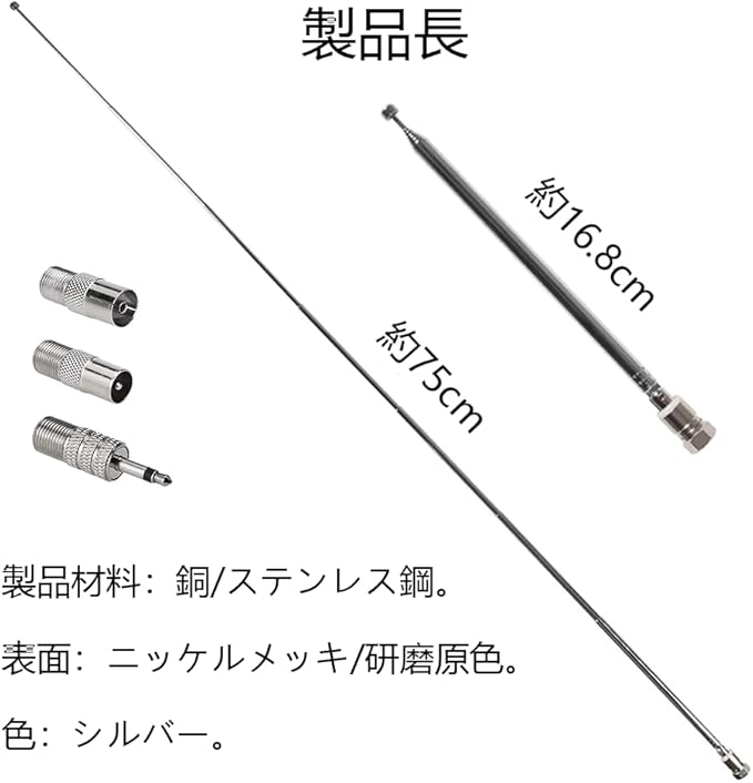 LIKENNY FMアンテナ ラジオ伸縮アンテナ 7節 75CM F型 ネジ式端子 ポータブルラジオアンテナ交換用 7MM 3種変換コネクタ付き 携帯型 ホームステレオレシーバー Vedio ホームシアターレシーバー