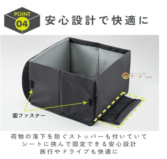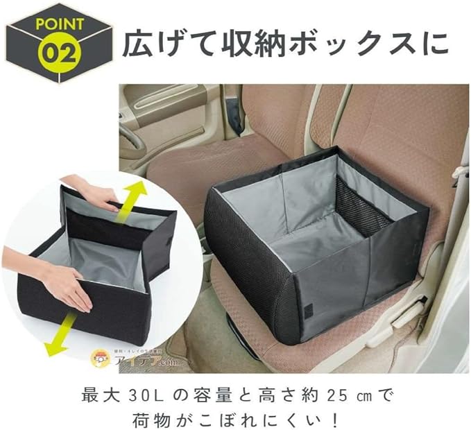 コジット 畳んで車のシートのクッション 広げて荷物入れ 荷物の転落防止! シートボックス腰クッション ブラック
