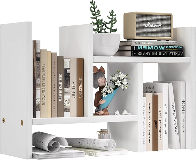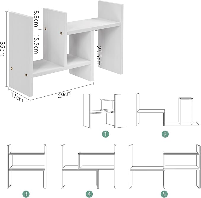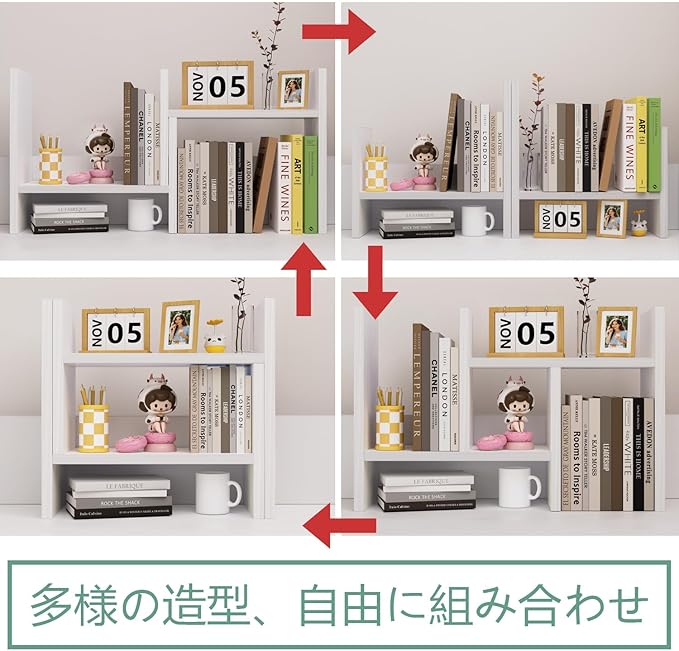 NIIKOUEデスク上置き棚 収納ラック 多種組み立て方式 卓上 伸縮型 3種の組み合わせ 木製 スッキリ 整理整頓 ブックスタンド 本立て (ホワイト)