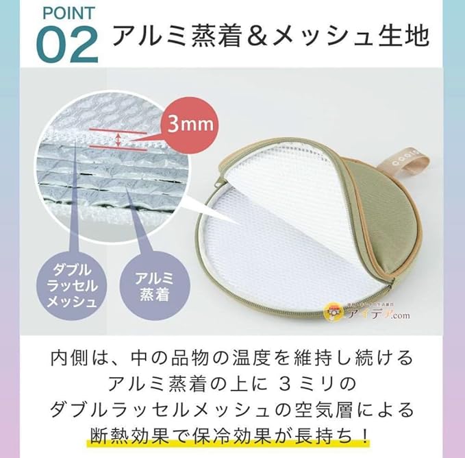 保冷効果がUP! 結露しにくい! ダブルラッセル メッシュ + アルミ蒸着 保冷剤付 COOLOOP 保冷ケース ネックリングの 冷たさ長持ち ネックリング M・Lサイズ 対応 アルミ蒸着 〈保冷効果〉 + ダブルラッセル メッシュ 〈保冷効果&結露しにくい〉 持ち運び 約8時間 ひんやりキープ※1 ※1凍らせた保冷剤を入れた本品に凍ったネックリングを入れ、ファスナーを閉じた状態で36℃の環境下で8時間、約28℃以下を持続。 溶けたネックリングの冷たさ復活!※2 ※2 環境により復活度合いは異なります。 保冷剤付 冷凍庫で凍らせてからご使用ください。(ネックリングは本品に含まれません。) ネックリング M・Lサイズ対応 ネックリングプラス M・Lサイズ対応 携帯に便利なループ付