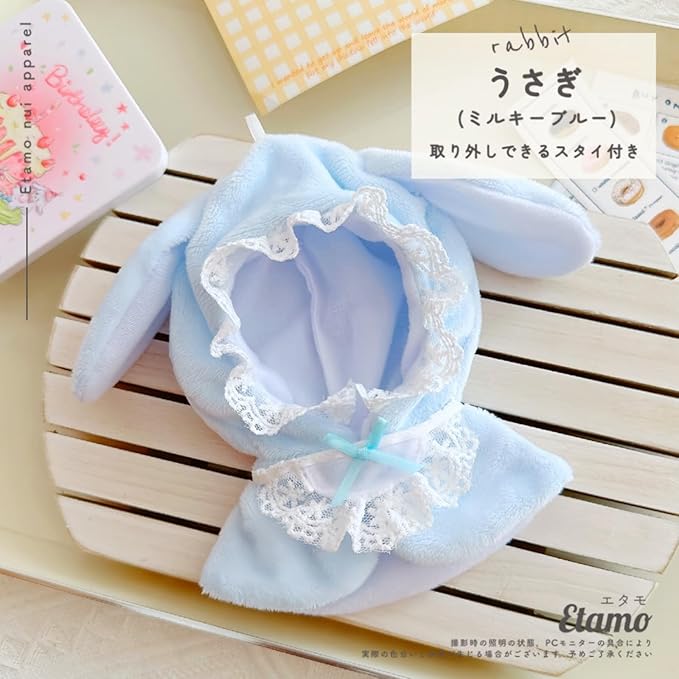 Etaom ぬい服 小さめ てるてる アニマル ポンチョ 約 10cm 11cm 動物 ぬいぐるみ コスチューム 着せ替え 洋服 推し活グッズ (うさぎ(ミルキーブルー))