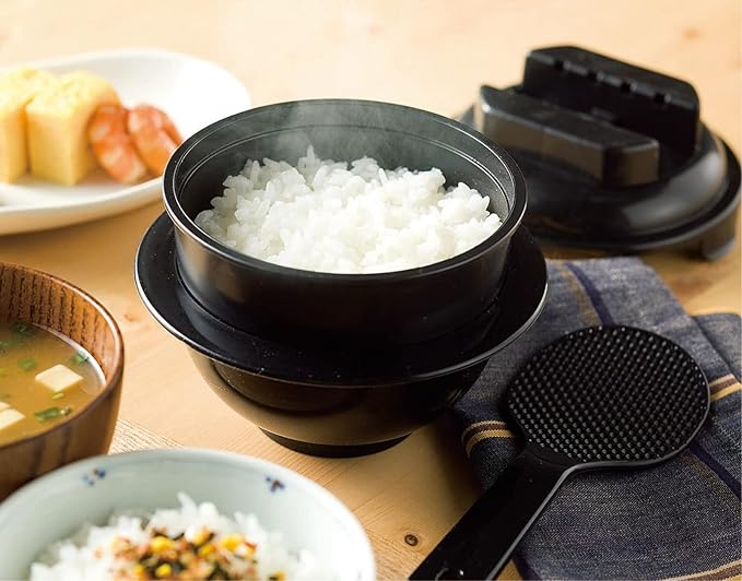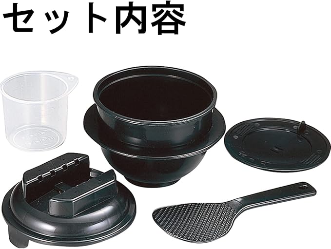 カクセー 炊飯器 電子レンジ調理 一合炊き 備長炭配合 ちびくろちゃん ブラック 約直径13.9 高さ12.5cm しゃもじ:約長さ17.5 幅6.5cm 計量カップ:1合用 しゃもじ 計量カップ付 レンジで温めるだけ 日本製